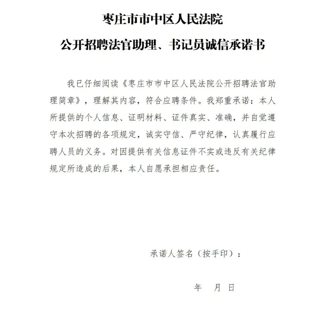 《枣庄市市中区人民法院招聘法官助理、书记员诚信承诺书》