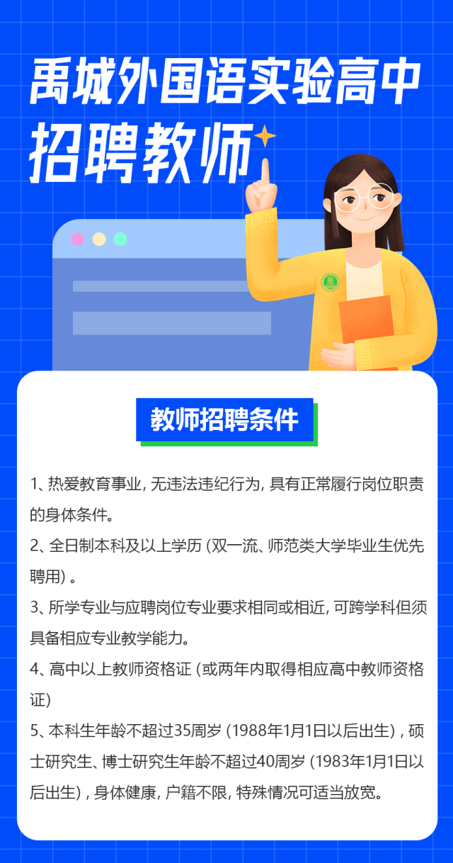 原文标题:禹城外国语实验高中2023年教师、骨干教师及学科带头人招聘简章